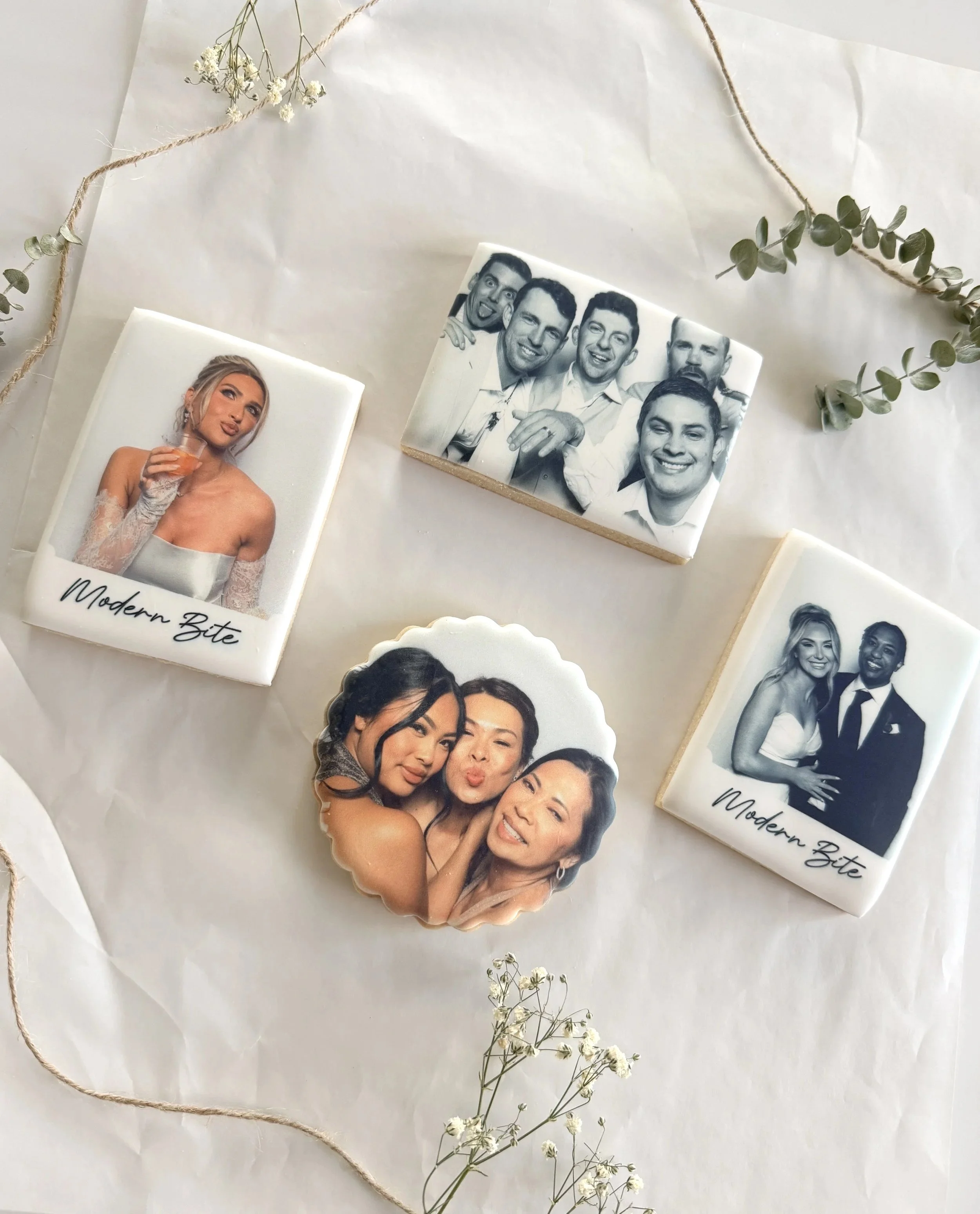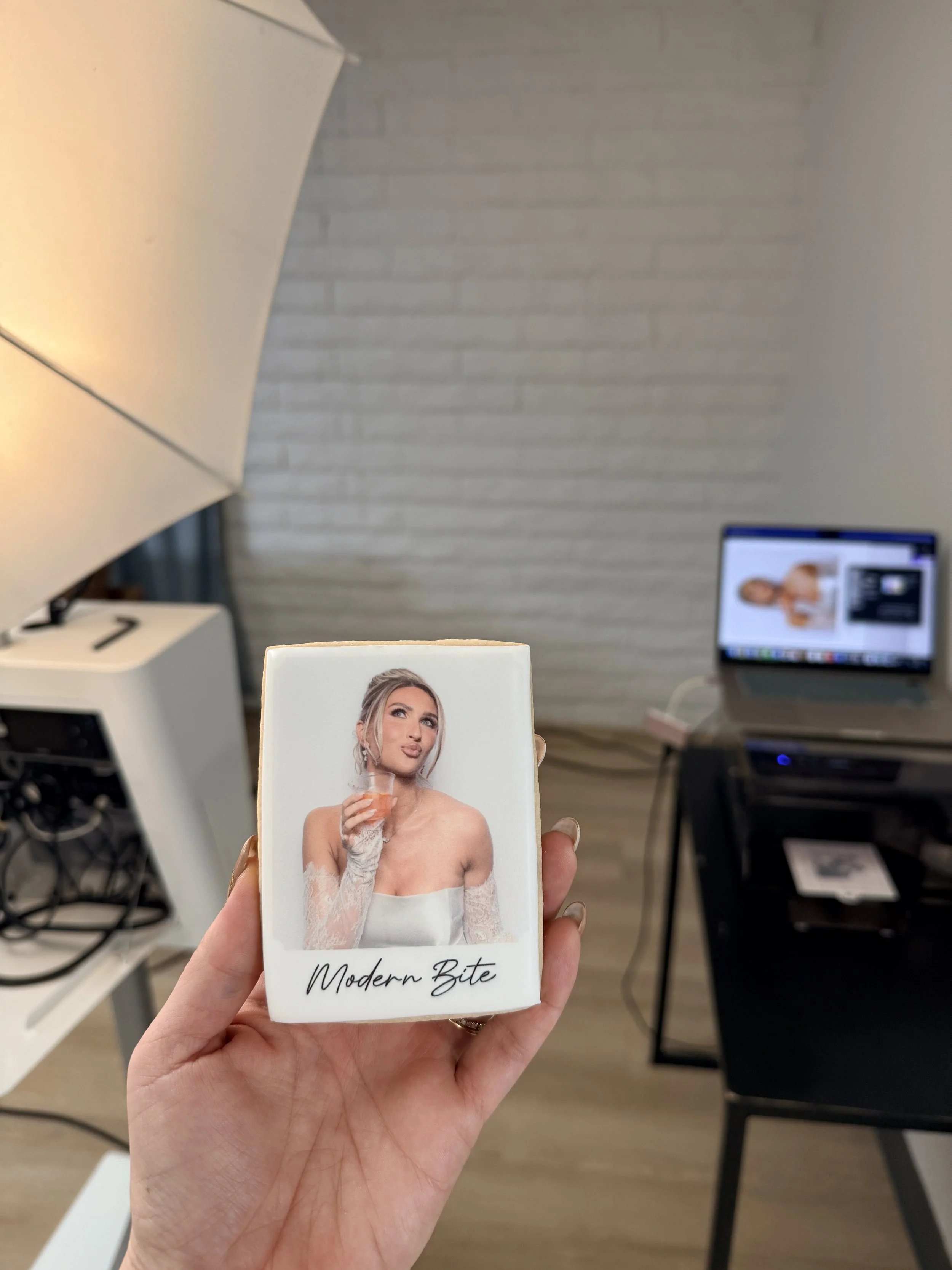 A truly elevated and unforgettable experience with our Modern Bite Cookie Photo Booth, where luxury meets creativity. Teaming up with Modern West Photobooth, we capture your most meaningful moments and print them directly onto a freshly baked, vanilla almond sugar cookie using premium edible ink.